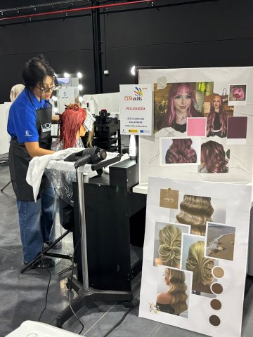 El pasado 23, 24 y 25 de octubre se celebró el campeonato autonómico Skills 2025 en el IFEDI de Ciudad Real. Nuestro centro participó con la alumna Nuria Alexandra Guamán Narváez, dirigida por la profesora de Imagen Personal Noelia López Becerra.
